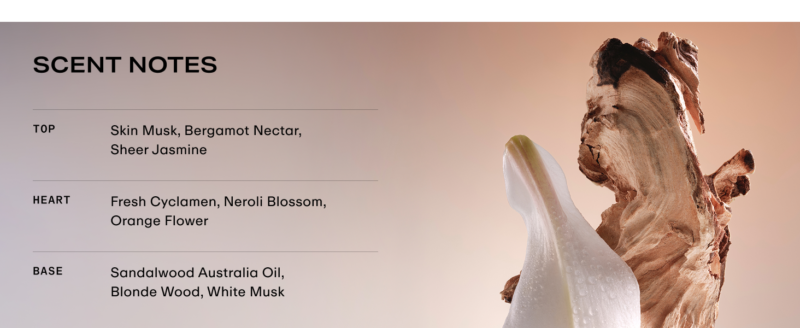 Gần gũi và Gợi cảm: Được mệnh danh là “mùi hương của sự thân mật,” Skin Scent thường được người xung quanh cảm nhận khi họ tiến đến gần bạn.