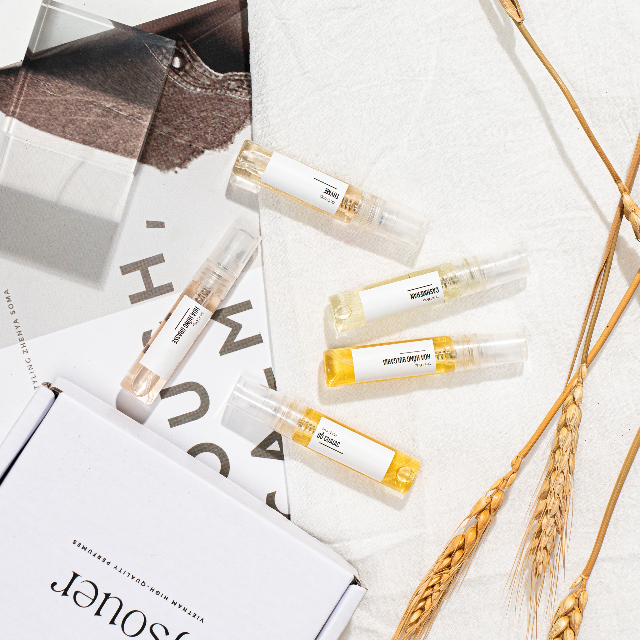 Bộ sưu tập được tuyển chọn kỹ lưỡng này là chìa khóa mở ra cánh cửa chạm đến các phổ hương đa dạng nhất. Với kích thước vial 5ml nhỏ gọn, đây không chỉ là sự tiện lợi để mang theo mà còn là một “nghi thức thử nghiệm” chuyên nghiệp.