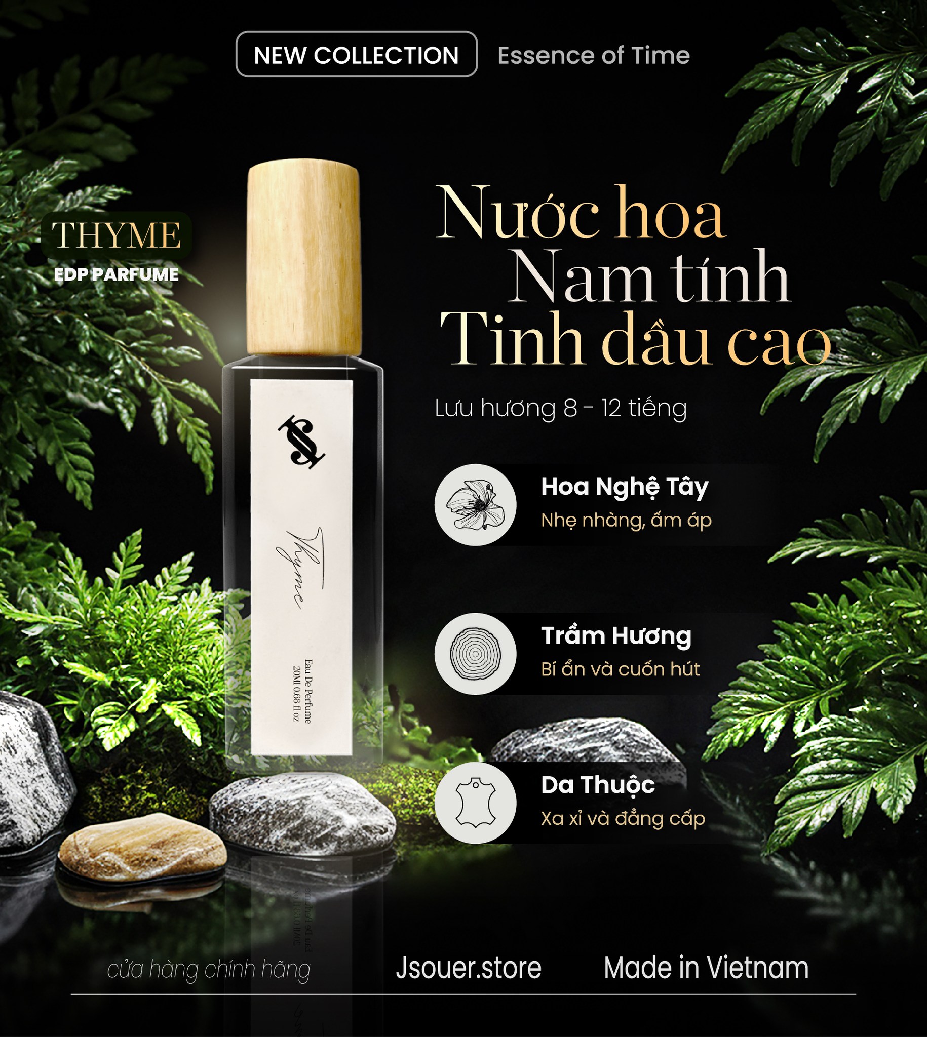 Tựa như một món quà từ thiên nhiên, Thyme mang đến sự hòa quyện hoàn hảo giữa nét thanh khiết của cây mâm xôi, cỏ xạ hương, và sự sâu lắng của da lộn, hổ phách.